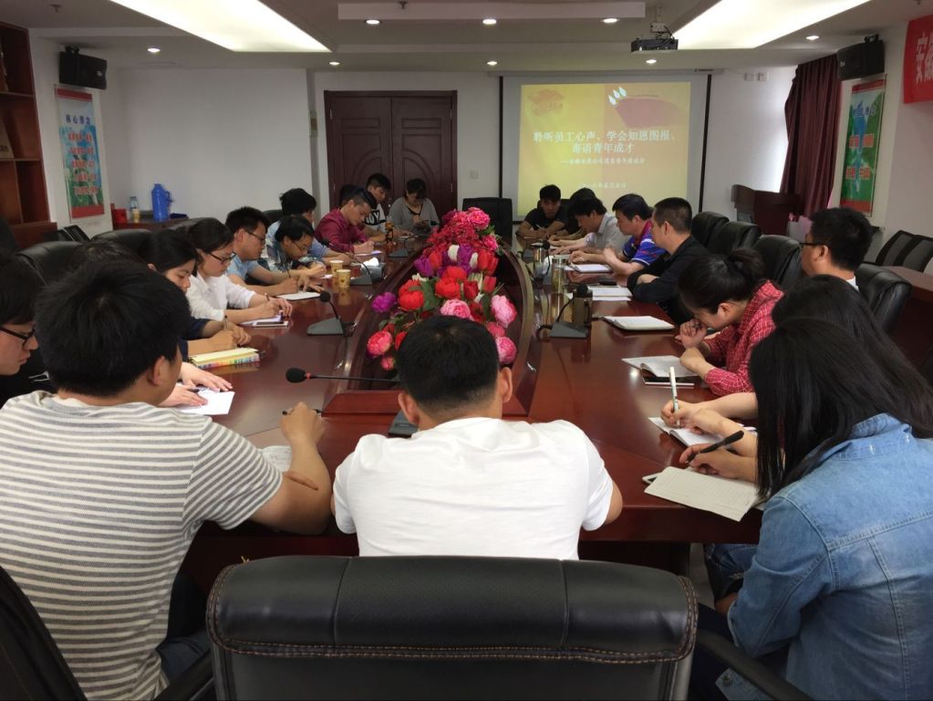 5月5日下午,安徽安裝公司團委召開了以“聆聽員工心聲、學會知恩圖報、寄語青年成才”為主題的團員青年座談會,公司黨委書記、副總經理胡六中,紀委書記、工會主席李寬旭,副總經理王勝利應邀參加了座談會,與各位團員青年交流談心。座談會由公司團委書記王偉主持。