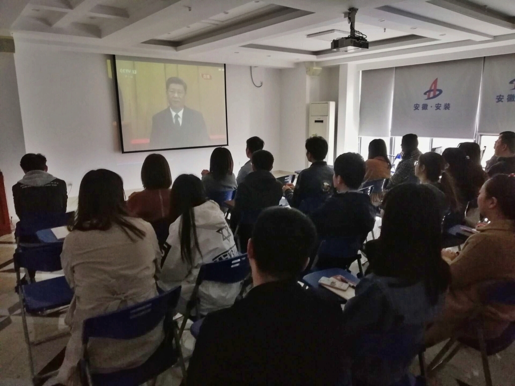 4月30日10時30分,紀(jì)念五四運動100周年大會在人民大會堂舉行。安徽安裝團(tuán)委組織團(tuán)員青年集中收看了大會直播,大會在莊嚴(yán)雄偉的國歌中拉開序幕,習(xí)近平總書記發(fā)表重要講話。
