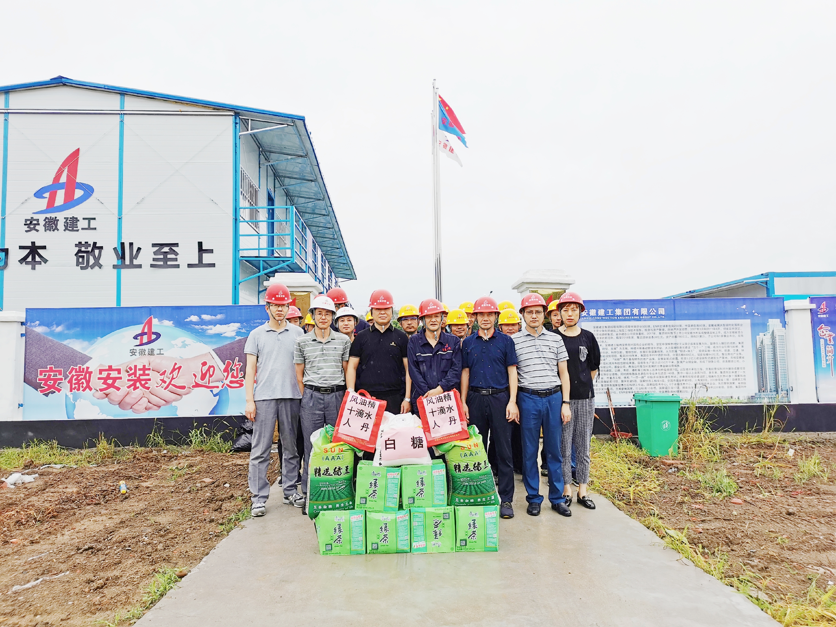 7月17日上午,公司領導走訪慰問了合肥分公司蕪湖宇培鋼結構項目部,為高溫天氣堅守在工作一線的項目部員工帶來了夏日防暑的常用藥品及飲料、綠豆、白糖、茶葉等。要求項目部堅持以人為本,一定要做好常態化疫情防控、防暑降溫、雨期安全工作,尤其是高溫、大風等極端天氣更要精心部署,合理安排作業內容,避開高溫時段施工,每日班前做好員工精神狀態確認,安全提醒到位,確保高溫季節一線職工安全度暑。