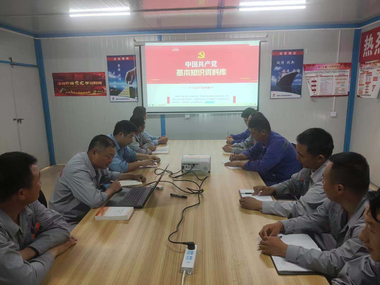 項目部積極響應公司黨史學習教育要求,促進黨史學習充分融入生產一線,營造出濃厚的“學黨史、促生產”的良好氛圍。5月1日,項目部開展了黨史學習教育交流會,會上項目部黨員皮軍同志帶領大家集中學習了《中國共產黨基本知識》并開展了黨史學習交流討論。5月4日,項目部組織團員青年通過線上觀看節(jié)目的方式觀看了由共青團中央、全國學聯(lián)舉辦的“學黨史、強信念、跟黨走”大型網(wǎng)絡直播主題云團課學習活動,在歌聲中感受激情燃燒的光輝歲月,在影像影視中見證時代的發(fā)展、歷史的變遷。