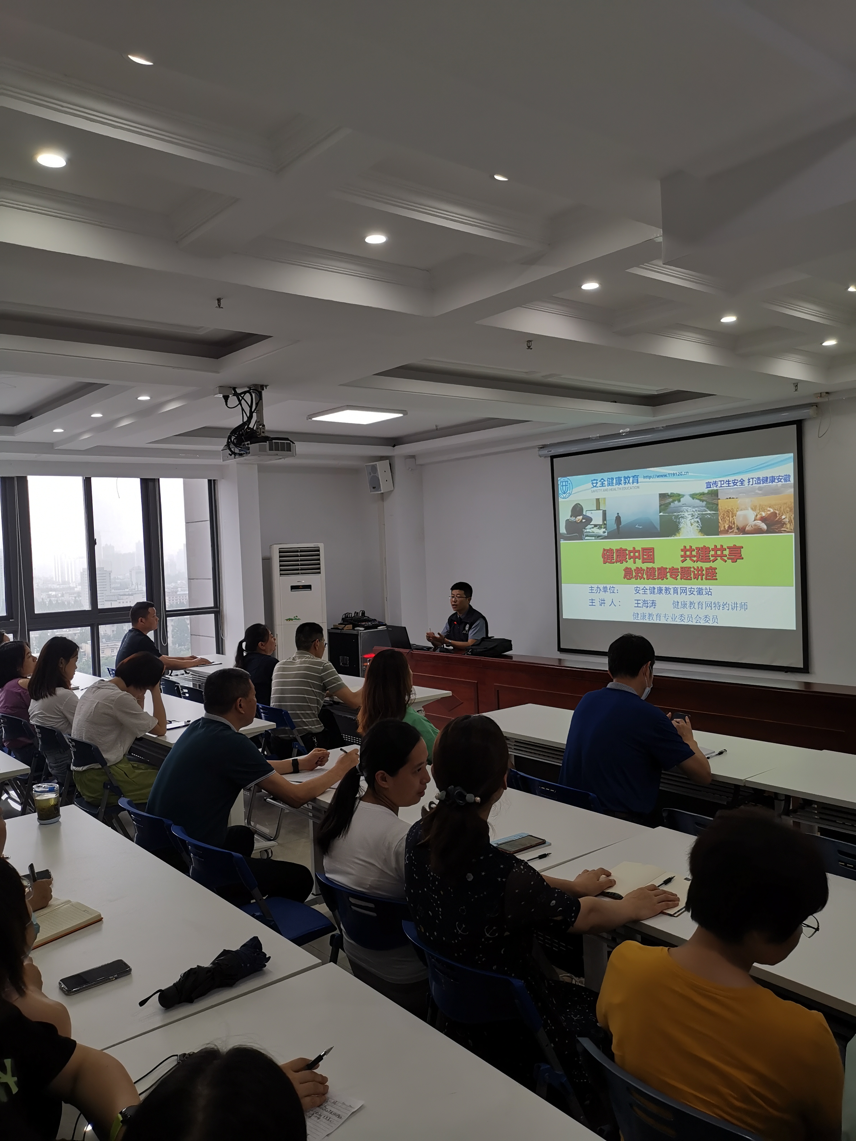 本次培訓邀請安全健康教育網王海濤老師為大家進行授課,老師結合豐富的健康教育知識,重點從四個方面介紹了常見職業病與慢性病的預防和改善,公共衛生常識及各種突發事故和突發疾病的自救互救,環境污染的危害及防護,倡導文明健康、綠色環保的生活方式。全面講解了安全職業健康的知識和自救互救的能力,課程內容深入淺出,得到在場參會人員的一致好評。