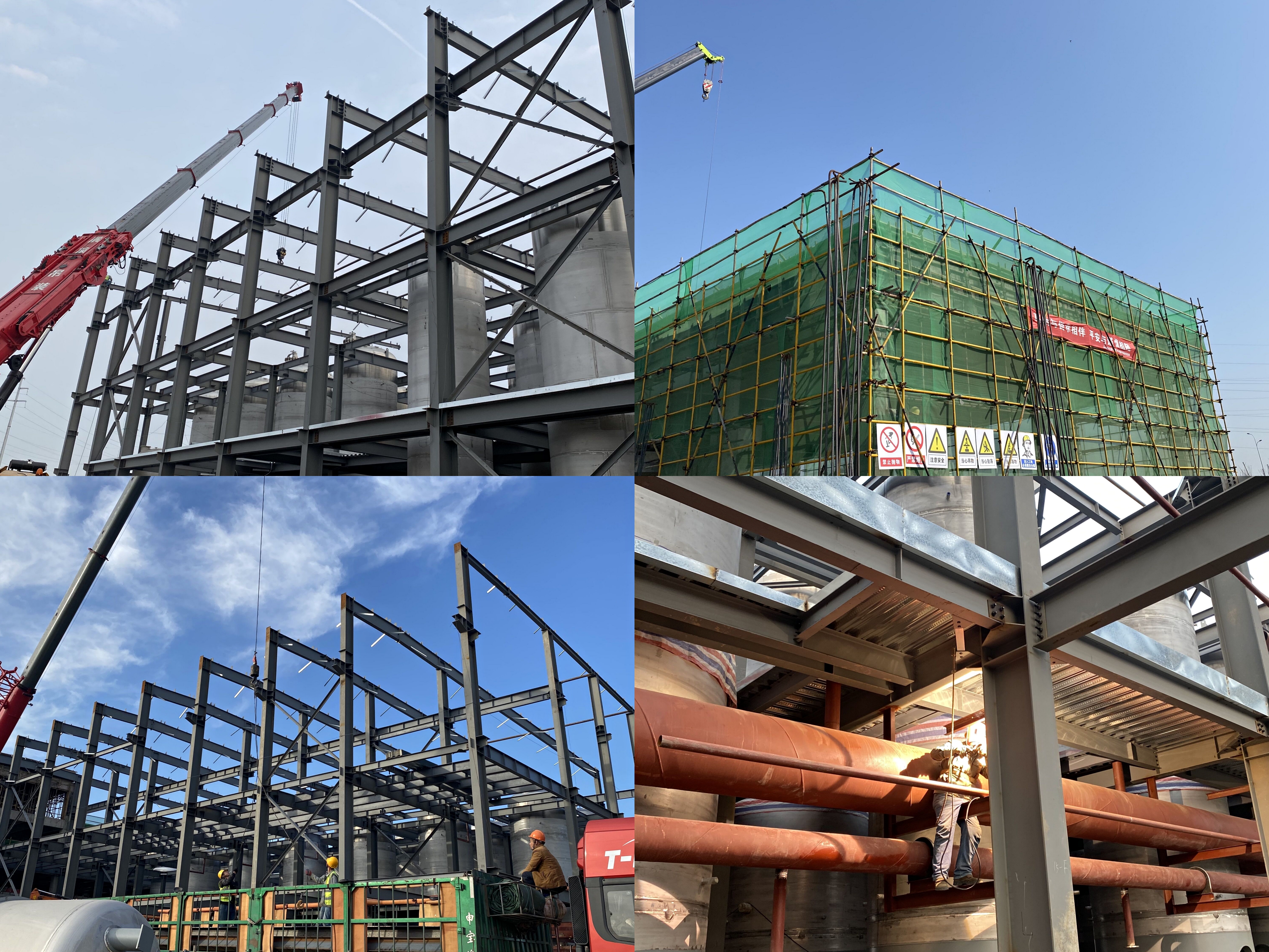 動力車間、投料車間也在火熱的進行著施工作業,項目部現場管理人員為了整個項目正常有序施工,白天在工地上緊張地忙碌著,晚上加班加點匯總當天的困難,解決當天的問題,并細化第二天的工作計劃,常常工作到凌晨。