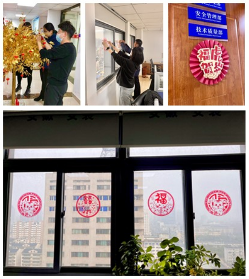 金牛送舊千家樂,玉虎迎新萬戶歡,春節將至,為豐富職工文化生活,營造歡樂、祥和、平安、喜慶、和諧的節日氣氛,合肥分公司工會提前準備了喜慶的新年裝飾、對聯、窗花等節慶用品,組織團員青年、機關員工將辦公室裝扮一新,并將濃濃年味帶到了各個項目部現場。