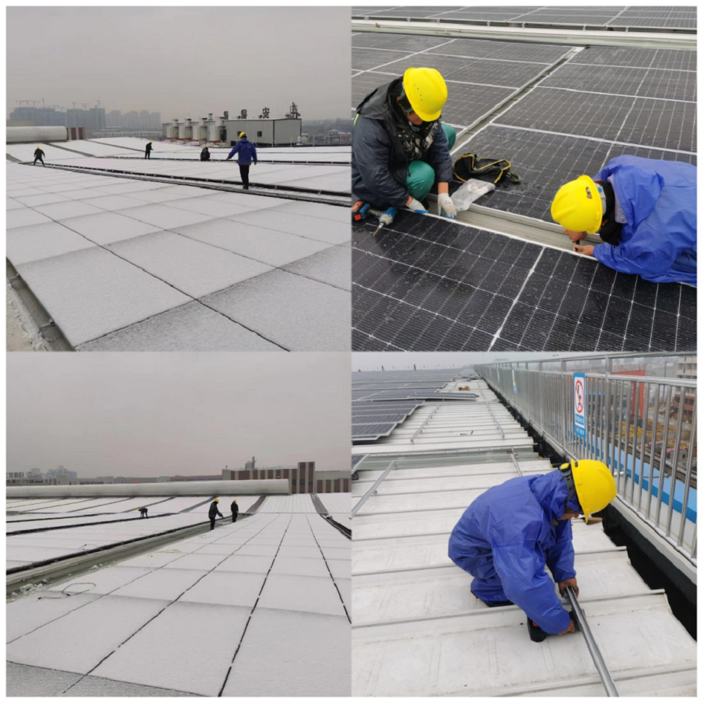 自項目開工以來,全體工作人員勇擔建設重任,憑借著豐富的管理經驗以及過硬的專業技術能力,克服工藝標準要求高、安裝精度要求苛刻、屋面作業安全系數高,低溫持續、雨雪頻繁等困難和挑戰,上下齊心、凝心聚力、高效協同,科學調配人、財、物等核心要素,協調保障設備供貨、進度控制、質量安全、成本管控等各項管理目標,最終按期實現項目施工任務。
