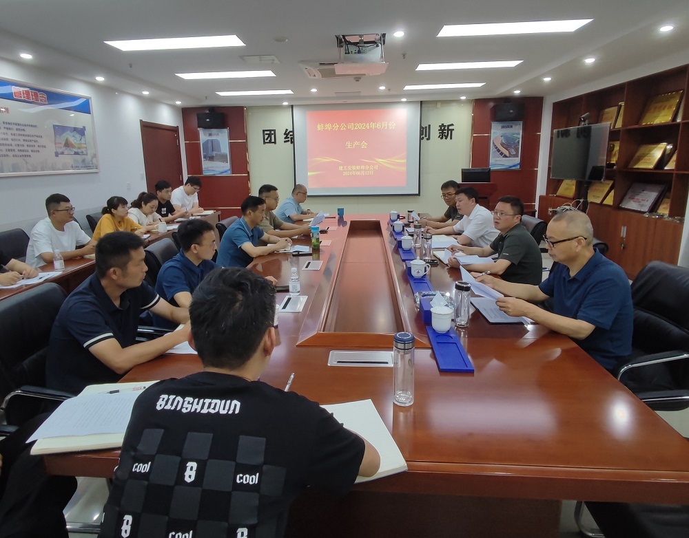 6月12日上午,蚌埠分公司組織召開6月份生產會,分公司領導班子、所屬各項目經理、機關各部門負責人及工程管理部全體員工參加會議,會議由分公司副經理張斌主持。