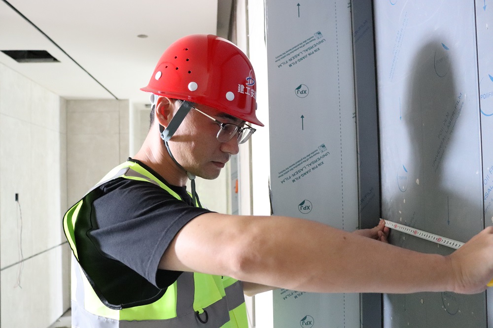 肥西縣鄉村文化旅游配套提升項目,技術負責人,湯楊,正在核查廳門安裝精度。丈量每一寸,精準每一毫,奮楫篤行,臻于至善,一路走來淌下的汗水,是對工作的熱愛與堅守。我在項目堅守,我為祖國慶生。