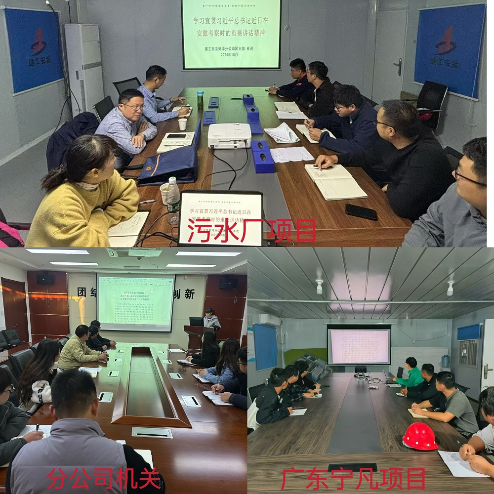 近日,建工安裝蚌埠分公司團支部分別在機關、在建項目,組織傳達學習習近平總書記考察安徽重要講話精神,分公司機關青年團員、各在建項目員工參會。