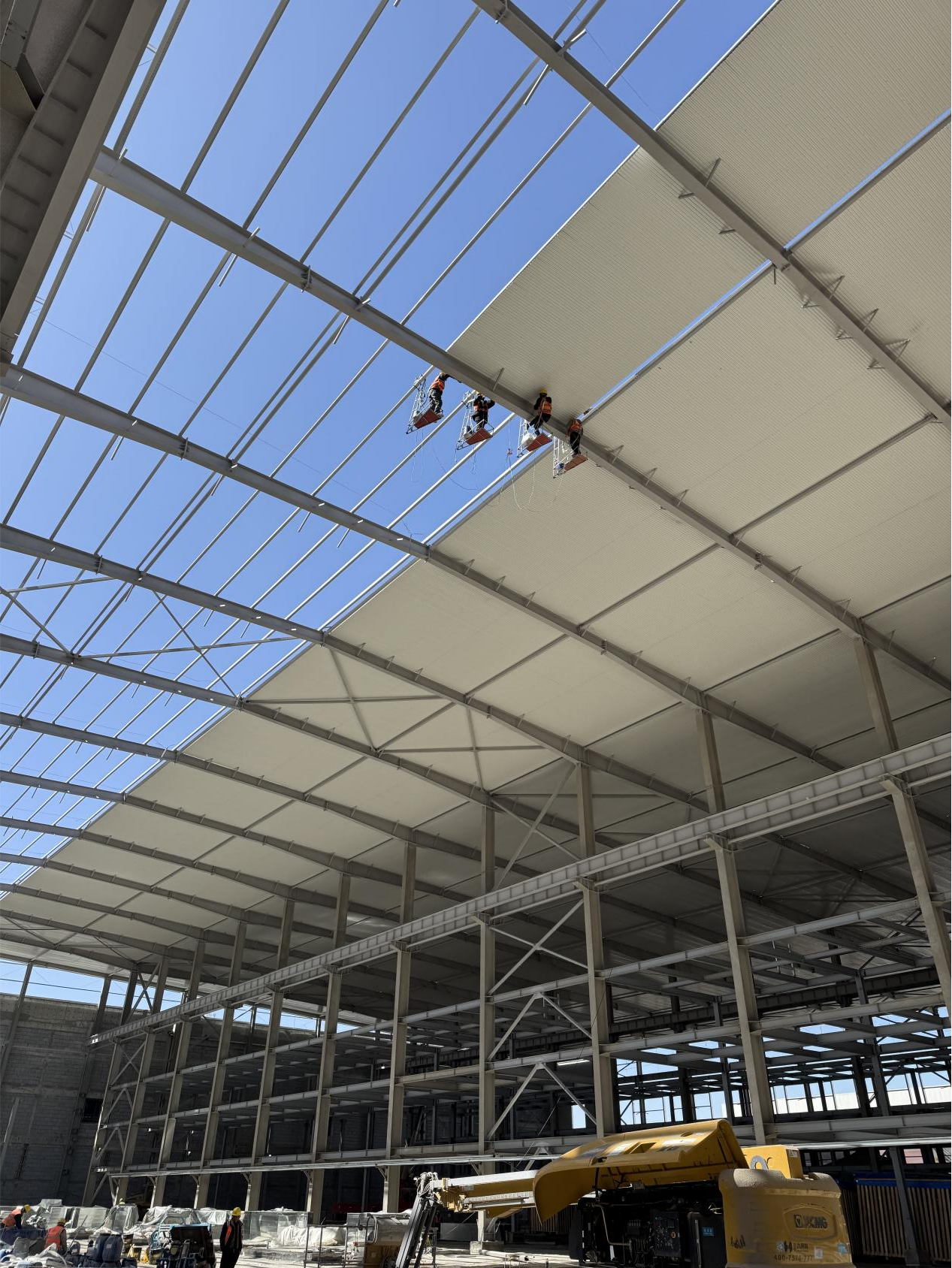 項目地處高海拔鹽湖區(qū),缺氧且淡水匱乏,施工環(huán)境惡劣,資源保障困難。面對不利因素,項目團隊迎難而上,積極尋找解決方案,為項目順利推進筑牢基礎。截至目前,項目已取得顯著階段性成果,廠房主鋼構(gòu)全部完成,管廊鋼結(jié)構(gòu)完成約95%,防火涂料完成80%,屋面及墻面圍護結(jié)構(gòu)完成約50%,配電房裝飾裝修工作有序進行,各項任務按計劃穩(wěn)步推進。