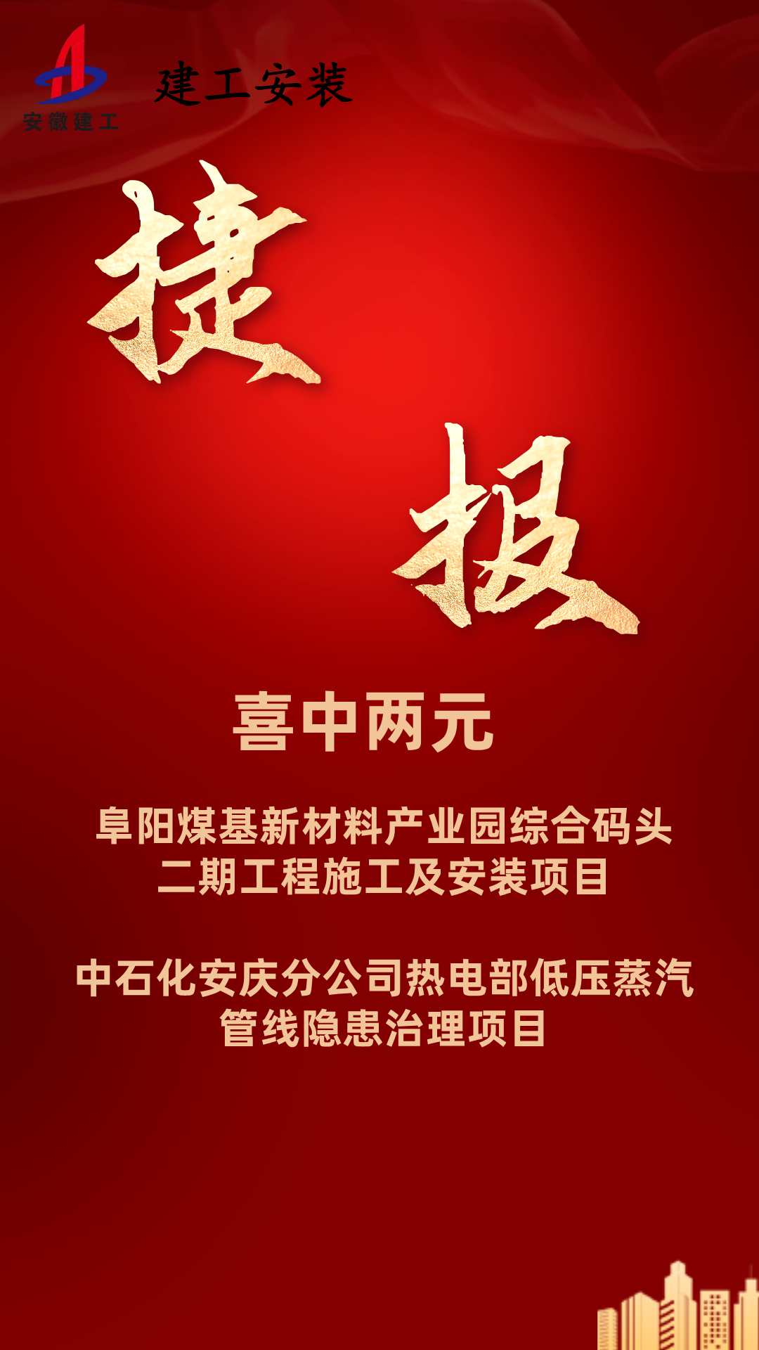 近期,建工安裝喜中兩元,成功中標(biāo)阜陽(yáng)煤基新材料產(chǎn)業(yè)園綜合碼頭二期工程施工及安裝項(xiàng)目以及中石化安慶分公司熱電部低壓蒸汽管線(xiàn)隱患治理項(xiàng)目,中標(biāo)總金額5400萬(wàn)元。