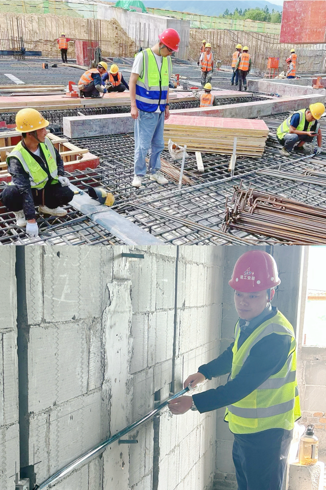 圖為涇青高速房建項目水電安裝專業(yè)分包工程項目基礎接地施工、插座點位復核
