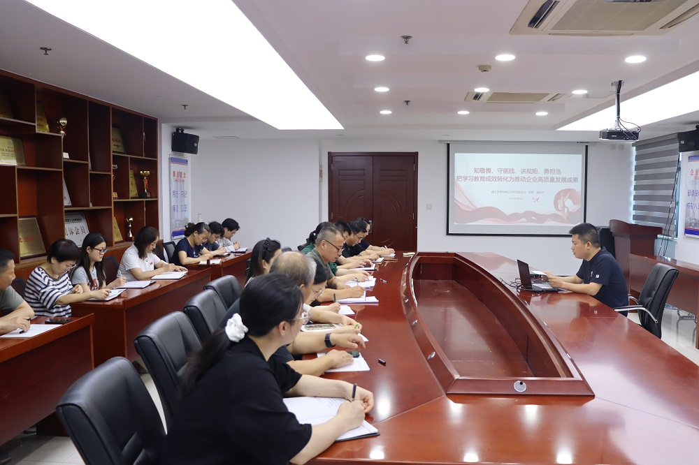 會上,夏國祥重點傳達了建工集團慶祝建黨104周年表彰會暨學習教育黨課報告會和建工安裝慶祝建黨104周年表彰會暨學習教育黨課報告會精神,并講授了題為 《知敬畏 守底線 講規矩 勇擔當  把學習教育成效轉化為推動企業高質量發展成果》的專題黨課。黨課中全面梳理了中央八項規定的具體內容,系統闡述了中央八項規定精神的內涵,結合近期典型案例深入剖析了違反中央八項規定精神的具體表現,并就如何推深做實深入貫徹中央八項規定精神學習教育,以優良工作作風凝心聚力、擔當作為,切實將學習教育成果轉化為提升工作實績實效展開深入探討。