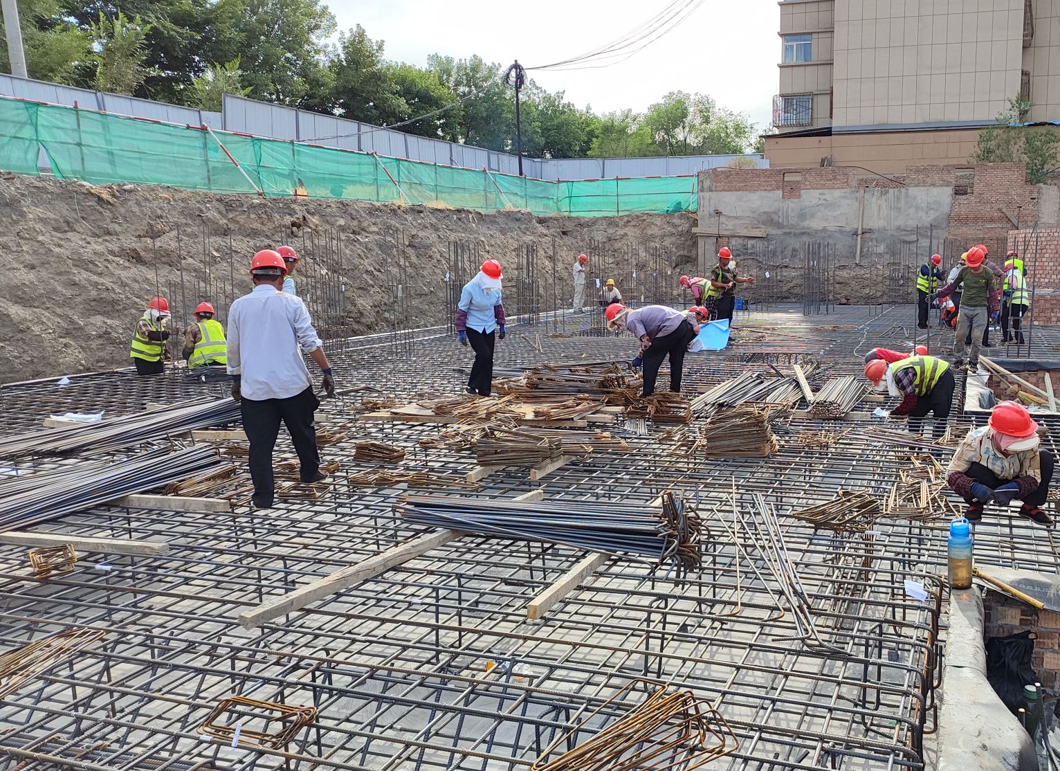 盛夏七月,熱浪襲人,建工安裝新疆烏蘇南苑項目部全體成員鉚足干勁、火力全開,奮戰在項目一線。該項目新建兩棟主樓,目前處于筏板基礎鋼筋綁扎。