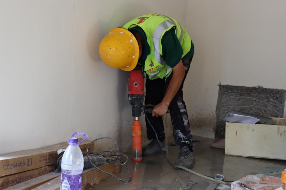 肥西縣城鄉一體化發展花崗項目施工人員正在對機房地面進行孔洞開鑿